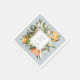 Marco de cítricos botánicos de arboleda de naranja de acuarela rústica chic, servilletas de papel personalizadas. La plantilla proporciona dos espacios para nombres y fecha del evento. El color de fondo, mostrado en azul pálido, se puede personalizar.