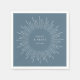 Marco moderno de explosión solar azul claro, servilletas de papel personalizadas pizarra azul. La plantilla proporciona dos espacios para nombres y fecha del evento.