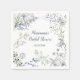 Una variedad de flores silvestres en tonos azules y vegetación en acuarela forman el fondo de esta servilleta para fiesta de boda. Una adición perfecta para la mesa de una boda con tema de flores silvestres o boho, para una pareja o una ducha de boda, pero puedes personalizarla para una fiesta de compromiso, celebración de aniversario, baby shower o fiesta de cumpleaños. Disponible con productos coincidentes.