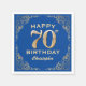 70.ª Fiesta de Cumpleaños Purpurina Azul y Oro de las servilletas de marco. Para una mayor personalización, haga clic en el botón "Personalizar" y utilice nuestra herramienta de diseño para modificar esta plantilla.