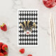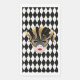 Esta servilleta de invitado de papel se muestra en una estampa festiva de diamantes de arlequín en blanco y negro con una huella de máscara de Mardi Gras. Personalizar este artículo o compra tal cual.