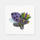 Bicho de ladrillo con alas moradas listo para el Mardi Gras con una máscara colorida y perlas.