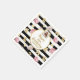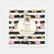 Haz que tu evento sea especial con estas servilletas de papel personalizadas que presentan tu foto subida y 4 líneas de texto personalizado rodeadas por un borde dorado elegante y colocadas sobre un patrón de rayas negras y blancas, rosas rosadas, margaritas y mariposas doradas. Perfecto para cumpleaños, fiestas de soltera y de bebé, jubilaciones, aniversarios o realmente cualquier día.