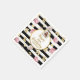 Haz que tu evento sea especial con estas servilletas de papel personalizadas con tu foto subida y 4 líneas de texto personalizado rodeadas de un borde dorado elegante y colocadas sobre un patrón de rayas negras y blancas, rosas rosadas, margaritas y mariposas doradas. Perfecto para cumpleaños, fiestas de bebé y despedidas de soltera, jubilaciones, aniversarios o cualquier día.