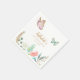 Una servilleta de papel de cumpleaños para niños con mariposa rosa y menta con adornos de oro falso. Hay un jardín de flores en el fondo. Personalizar este producto agregando la información de su fiesta. Perfecto para un fiesta chica en primavera.