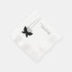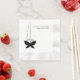 La servilleta de papel de la mariposa negra tiene una elegante mariposa negra con alas de propagación y un par de antenas de rizos, todo sobre fondo blanco. © Morning 6