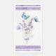 Toallas de bonito de papel de huésped, generosamente espaciadas con mariposas azules y tallos de lavanda. Actualmente, el texto dice: "Invitado de bienvenida" pero puede cambiarlo como considere oportuno. Bonito con franjas acuáticas de color morado en el conjunto superior e inferior del diseño.