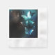 Mariposas brillantes nocturnas de menta sobre fondo abstracto negro.