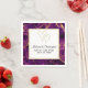 Las servilletas de fiesta de bodas con un hermoso patrón abstracto con un diseño de mármol. Colores ricos en violeta que se mezclan con cintas giratorias en imitación de oro de mezcla de colores y mezclado a lo largo del diseño. Un cuadrado con un falso borde de Relieve metalizado dorado sobre la parte superior con tu texto personalizado dentro. 2 unieron corazones en un oro falso metálico sobre el texto.