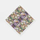 Esta es una servilleta de estilo divertido y elegante inspirada en el Mardi Gras, con máscaras, plumas y objetos decorativos sobre un fondo de aceite de tinta. Los colores utilizados en el diseño son los colores tradicionales del Mardi Gras, morado, verde y dorado.