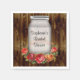 El diseño de la ducha de novia con tarro de Mason y cordel de flores y rosas coloridos, en una imagen de fondo de tablero de madera de color marrón oscuro. Un tema rústico de verano al aire libre para una ducha de novia con tema de campo o cabina. Los ricos tableros de madera marrón oscura de una valla antigua o de los suelos contrastan con el bonito gráfico floral de bonito. © CustomInvitesOnline.com