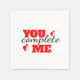 Añade un toque romántico a tus momentos especiales con estas servilletas de papel "You Complete Me", perfectas para cenas de pareja, aniversarios o bodas.