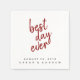 ¡La planificación de los bodas está en los detalles! Guau a sus bodas invitados con estas adorables servilletas personalizadas. El divertido guión del "mejor día de la historia" encarna la emoción de su día especial y añade ese toque especial y personalizado a la recepción de su boda. Además, el color del texto se puede personalizar para que coincida con tus colores o temas bodas.