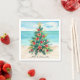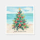 Add a festive tropical touch to your holiday party with these Mele Kalikimaka Christmas cocktail napkins. Featuring a palm leaf Christmas tree adorned with hibiscus flowers, ornaments, and a starfish topper, these napkins bring island-style aloha spirit to your celebration. Perfect for Hawaiian-themed Christmas luaus, beach parties, or any tropical holiday gathering, they coordinate beautifully with matching invitations and party supplies.
