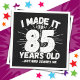Este divertido diseño de cumpleaños número 85 hace un gran chiste de humor sarcástico o un regalo de novedad para un tema de cumpleaños de 85 años o una fiesta sorpresa de cumpleaños número 85. Funcionalidades como "Lo hice a los 85 años... nada me asusta", un gracioso meme de cumpleaños de 85 años que tendrá muchas risas de la familia, amigos, invitados fiestas y el hombre o chica de cumpleaños también!