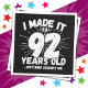 Este divertido diseño de cumpleaños 92 hace un gran chiste de humor sarcástico o un regalo de novedad para un tema de cumpleaños de 92 años o una fiesta sorpresa de cumpleaños 92! Funcionalidades como "Lo hice a los 92 años... nada me asusta", meme gracioso de 92 años que tendrá muchas risas de la familia, amigos, invitados fiestas y el hombre o chica de cumpleaños también.