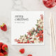 Feliz Navidad y nombre familiar Poinsettias Napkins. Texto de personalizable en la esquina superior derecha con acuarela blanca y roja Poinsettias, bayas y follaje en la esquina inferior derecha para hacer el texto y el diseño en balanza, Un fondo base blanco. Un diseño atemporal con flores de invierno para su temporada de Navidades o eventos año tras año. Disponible en diferentes tamaños y colores de fondo. Vea nuestra colección de Navidades con el diseño de The Watercolor Poinsettia para un look sencillo y coherente para su casa de vacaciones, evento de Navidades y cenas o ideas de regalo atemporal.