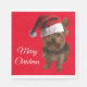 Un yorki sucio con un gorra de Santa Claus para Navidades