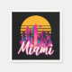 Estilo retro "Miami" diseño de texto ilustracion al atardecer con sol y rascacielos decoración en rosa, amarillo y púrpura