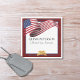 This design features beautiful fully customizable text, beautiful deep burgundy background and flag adorning the top, along with a golden eagle crest at the bottom, which can be fully customizable for text as well.