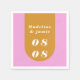 Nuestra servilleta boda, minimalista y audaz, al estilo retro, es perfecta para la pareja de moda a la que le encanta destacar y hacer una declaración audaz. Nuestro diseño presenta una combinación de colores vivos, rosa y amarillo. Una forma de arco abstracto simple crea un aspecto audaz con la fecha boda mostrada audazmente en un tipo de letra grande y blanco junto con el nombre de la pareja. Diseñado por Moodthology Papery