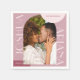 Esta moderna servilleta de boda de fotos en arco burdeos y rosa rosa presenta un diseño geométrico de moda y una gran tipografía.