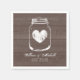 panel de grano de madera de grano rústico moda de campo servilletas de boda de tarro de albañil. Colores marrón y blanco. Elegante diseño de tipografía de escritura vintage para bodas de verano estilo matrimonio / jardín. Colores de fondo de personalizable para el tema de novia y novio. Frasco de vidrio con símbolo de amor descolorido. Tema romántico del bricolaje para casarse en julio, agosto, septiembre, etc.