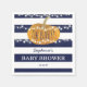 Calabaza caída moda bebé toallas de ducha con fondo rayado de moda azul y blanco, luces de cuerda, calabaza y una plantilla de texto personalizada.