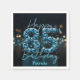 Añada elegancia a la celebración con esta servilleta de papel de personalizable de 85 años. Una brillante exhibición de brillantes piedras preciosas azules forma la frase "Feliz cumpleaños 85", creando un deslumbrante punto focal. El fondo, profundo y refinado, está decorado con suaves lámparas de bokeh, lo que realza el lujo. Perfecto para un cumpleaños histórico, este refinado diseño es totalmente personalizable, lo que le permite personalizar el nombre para un toque único.
