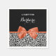 Personalice añadiendo el nombre de su chica fiesta a estas servilletas de papel de papel de leopardo en blanco y negro de moda con una elegante cinta naranja quemada atada en un sofisticado arco. Este elegante diseño de impresión animal es una imagen plana impresa y no contiene cinta real.