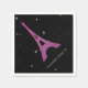 Las servilletas de papel de la fiesta de 16 años con temática parisina, con gráficos de fondo relleno de estrella negra y purpurina rosa que lucen gráficos de la Torre Eiffel. Personalice el texto blanco para el día especial de su hija. Productos a juego disponibles.