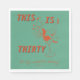 Glamour vintage 30 cumpleaños servilleta en verde y naranja. Cuenta con un chica de cócteles dibujado a mano y una caligrafía de escritura caprichosa.