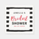 Impresione a sus invitados con esta servilleta personalizada de ducha de moda con un elegante fondo de rayas blancas y negras y la palabra "Bridal" con letra de guión de color rojo. Consulte la invitación a la ducha de novia coincidente en mi tienda http://www.zazzle.com/chic_black_stripes_red_bridal_shower_invitation-256875370297397897?rf=238364477188679314 Personalízala reemplazando el texto del marcador de posición. Para obtener más opciones, como cambiar el tipo de letra y su tamaño, haga clic en el botón "Personalizar". *Tenga en cuenta que la marca de agua Zazzle que aparece en la vista previa del zoom NO aparecerá en el producto impreso final. © Rosewood y Citrus