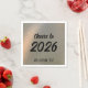 Celebrate the New Year with this stylish faux brushed metal custom napkin. Personalized this text for your own purposes with your name, business name, or location if desired. The metallic copper bronze is not real foil only a faux brushed metal. The year 2026 written in editable minimalist font is displayed in the center of the festive napkin. "Cheers to" written in stylish modern typography can be customized if desired. These would be great for a New Years Eve Party, or a New Year's Eve dinner, or a simple romantic dinner. Modern, trendy, simple elegance for your celebration. See my collection for matching, paper plates, cups and elegant personalized stemware.