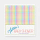 Modern Pastel Plaid Rainbow Baby Shower Party Napkins with Customizable Text