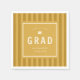 Graduation party napkins with a modern, sporty, yellow striped background, ideal for athletes.