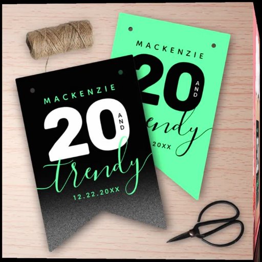 Celebre el estilo de los grandes dos con este diseño moderno, que incluye llamativos bloques en negro, blanco y verde menta y letras escritas a mano sobre un rico fondo negro a gris humeante. Diseño © W.H. Sim. Ver más en zazzle.com/expressionsoccasions