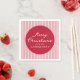 Añada un toque festivo a su mesa de vacaciones con estas servilletas de Navidades de franjas rojas modernas. El diseño presenta "Feliz Navidad" en un guión blanco escrito a mano con el nombre de tu familia mostrado abajo, rodeado por un marco rojo y puesto en un alegre fondo de rayas rojas y blancas. Perfecto para fiestas, cenas familiares o celebraciones de temporada, estas servilletas se coordinan con el resto de nuestra colección de Navidades de franjas modernas.