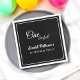Esta elegante servilleta en blanco y negro es perfecta para un cumpleaños moderno. el diseño es sencillo, con una elegante caligrafía blanca sobre un fondo negro.