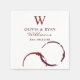 Las servilletas rusticas de boda de moda presentan un monograma casado con los nombres de novias y novios y el apellido inicial, fecha boda, acompañado de anillos rojos oscuros inspirados en las manchas de vidrio.