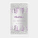 Para una fiesta de cumpleaños glamurosa y femenina del 21 (o de cualquier edad). Un falso fondo metálico plateado con goteo de purpurina morado y falso plateado, pinta goteando. Personalice y agregue un nombre, edad 21 y fecha. El nombre está escrito en morado con un guión moderno de estilo con letras a mano