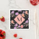 Servilleta De Papel Monograma Floral Clásico Negro y Rosa Coral