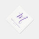 Esta servilleta boda ofrece un diseño sencillo y elegante. El diseño presenta un monograma de estilo morado escrito a mano y texto limpio para los nombres de la novia y el novio y la fecha de su boda en un fondo blanco.