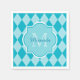 Añada un ambiente elegante a su estilo fiesta con estas servilletas de papel de color azul turquesa y estilo de argyle acuático con un marco de monograma ondulante. Personalice este moderno diseño de arlequín rosado añadiendo el nombre y la inicial monogramada de cualquier joven elegante.