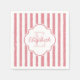 Añada moda y estilo a su estilo fiesta con estas servilletas de papel pintadas de rayas rosadas y blancas angustiadas. Personalice este diseño rosa lindo y elegante añadiendo el nombre y el monograma inicial de la joven de moda.