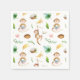 Las servilletas fiestas de papel divertido tienen un ambiente acuático tropical que presenta una variedad de monos tontos, hojas de palma, plátanos y cocos sobre fondo blanco.