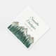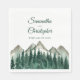 Estas hermosas servilletas bodas añaden estilo y clase a su recepción, cena de ensayo u otro evento relacionado con bodas. Presentan un diseño rústico con un paisaje acuático con picos de montaña escarpados y un bosque de pinos en primer plano. Encima de la obra de arte están los nombres de la pareja y la fecha boda escrita en elegantes letras de guiones verdes del bosque. Ideal para un boda al aire libre.
