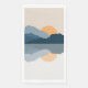 Resumen ilustracion colorido del amanecer con las montañas azules reflejadas en el lago