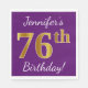 Servilleta De Papel Morado, Faux Gold 76th Birthday + Nombre personali