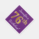 Este sencillo diseño de servilletas de papel muestra un mensaje como "¡76 cumpleaños de Jennifer!", con el "76" en apariencia de oro falso, en un fondo morado. El nombre se puede personalizar. Podría ser usado en una fiesta de cumpleaños para alguien que está celebrando su cumpleaños setenta y seis. [~Z0000085]